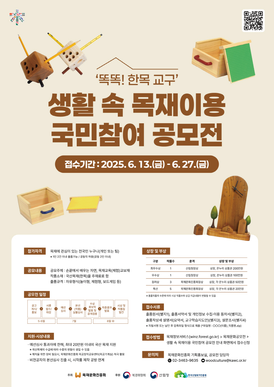 (02-3463-9635, E-mail : woodculture@kawc.or.kr)